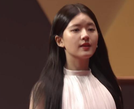 今年网剧刷屏爆红的赵露思,虽然礼服简约,发型简单,而脸显得很大,但即使没打瘦脸针,整体看起来却有辨识度,而且比较真实自然,也是一种健康丰满的美丽。
