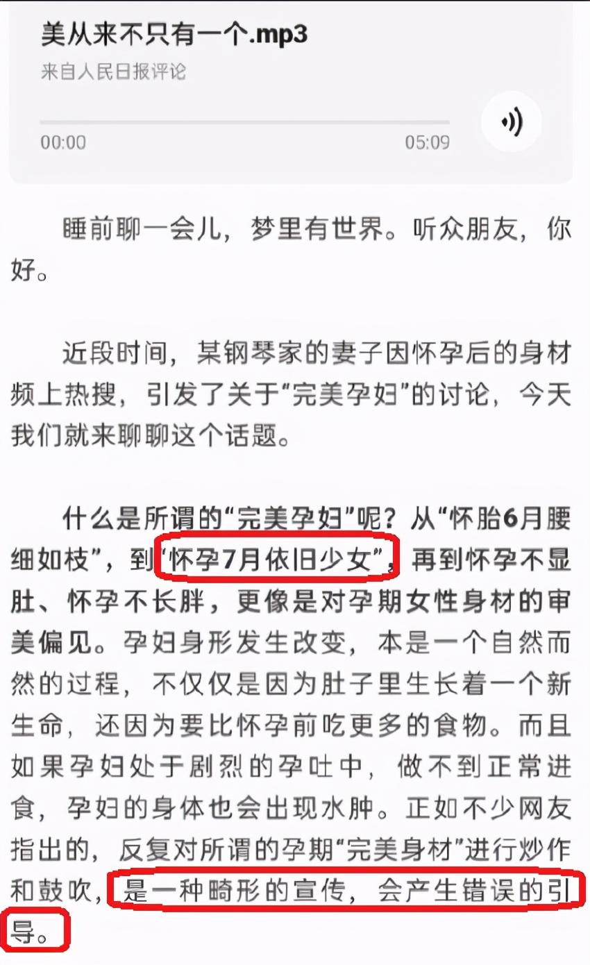 所以连官媒人民日报都看不下去,要对吉娜炒作怀孕后身材和状态的热搜进行评论。2020年12月24日,《人民日报》对朗朗妻子吉娜因为怀孕频上热搜一事发表评论。该文章表示:这些热搜词汇更像是对孕期女性身材的审美偏见,孕妇身形发生改变,本是一个自然而然的过程。如果反复对所谓的孕期“完美身材”进行炒作和鼓吹,是一种畸形的宣传,会产生错误的引导。
