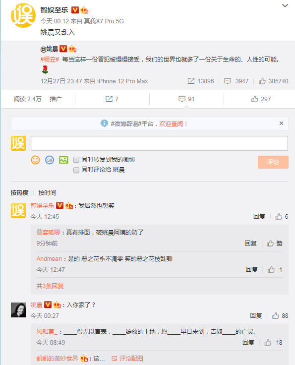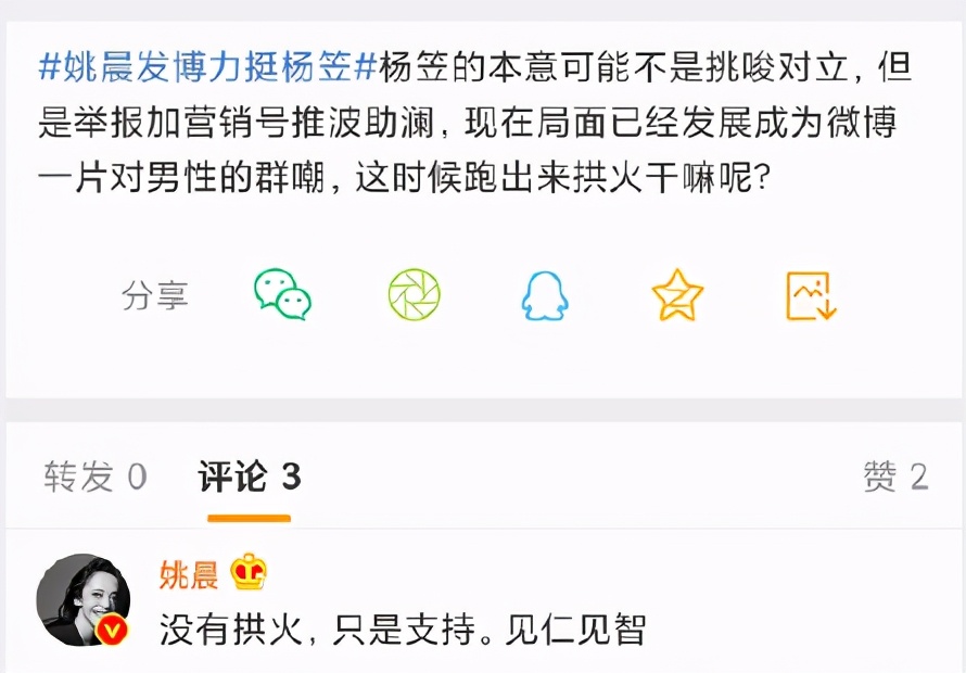 其实每天娱乐圈和网上那么多人和事,姚晨也没见个个都出来仗义执言,偏偏挑个很火很有争议的下手,自然就洗不白了。