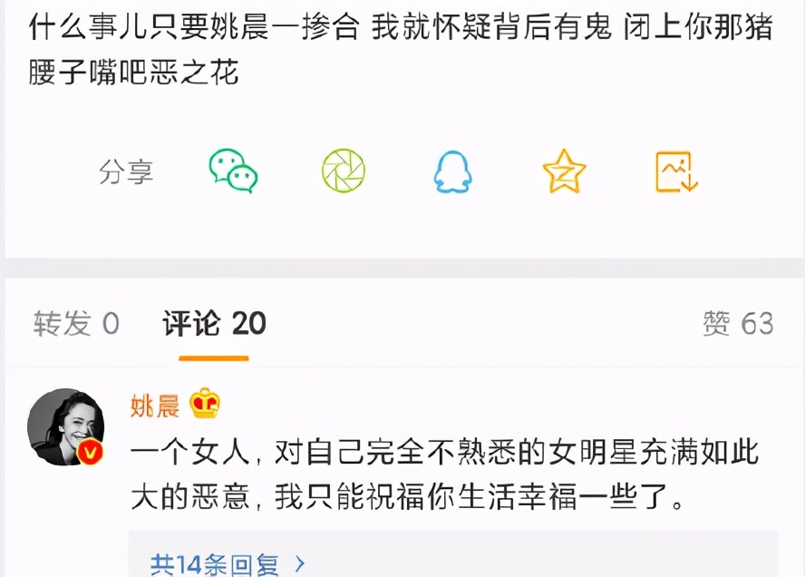 更重要的是,面对网友的质疑,姚晨大半夜还亲自下场怼人。如果按照她的意思,被冒犯了就要接受,又何必出来辩驳呢。