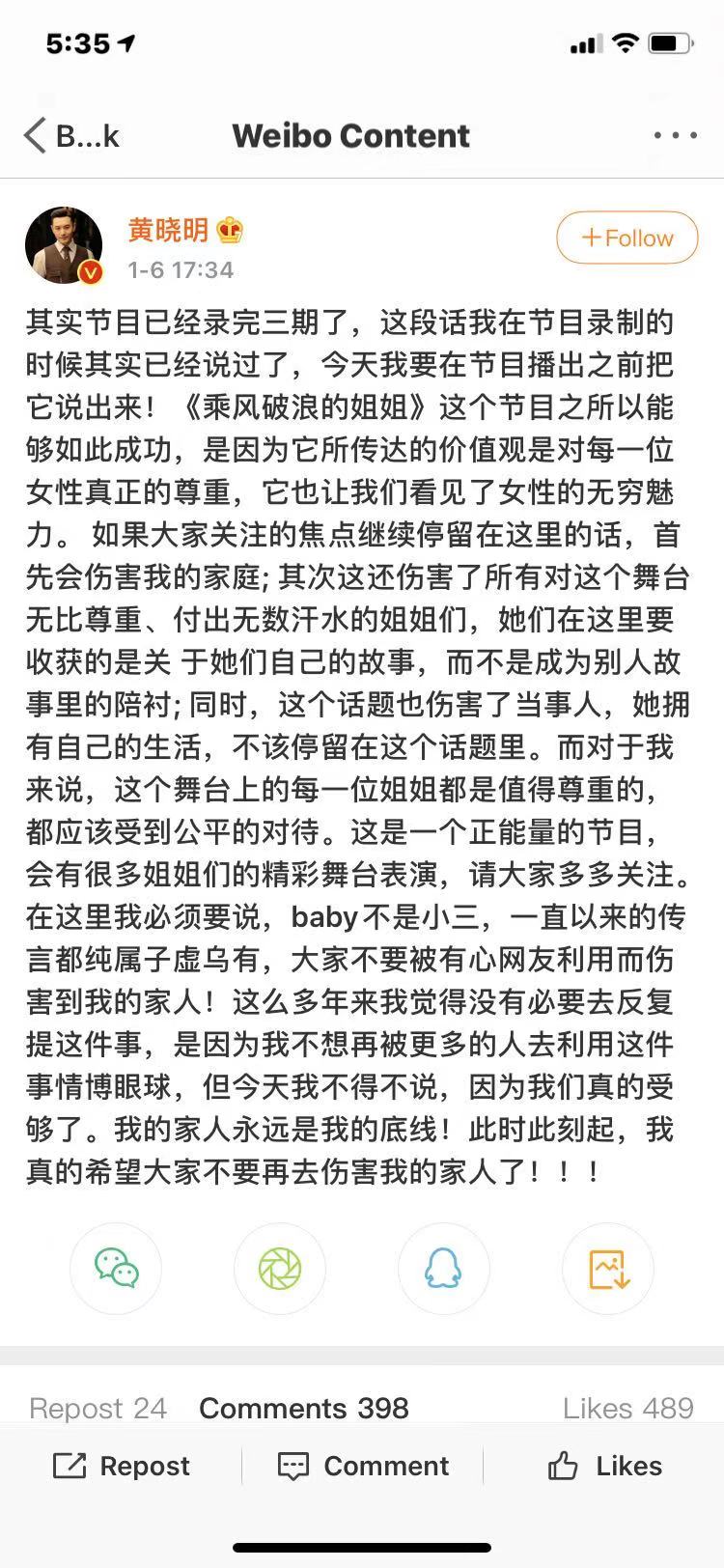其实就算没有在娱乐圈浸染的素人,都知道黄晓明不该去参加《乘风破浪的姐姐》第二季,既然有前任女友李菲儿在,不管与Angelababy现在婚姻状况如何,只要他一去,就绝对是消费的工具抨击的靶子,但他还是去了,在别人眼里是糊涂,但他肯定也是深思熟虑。