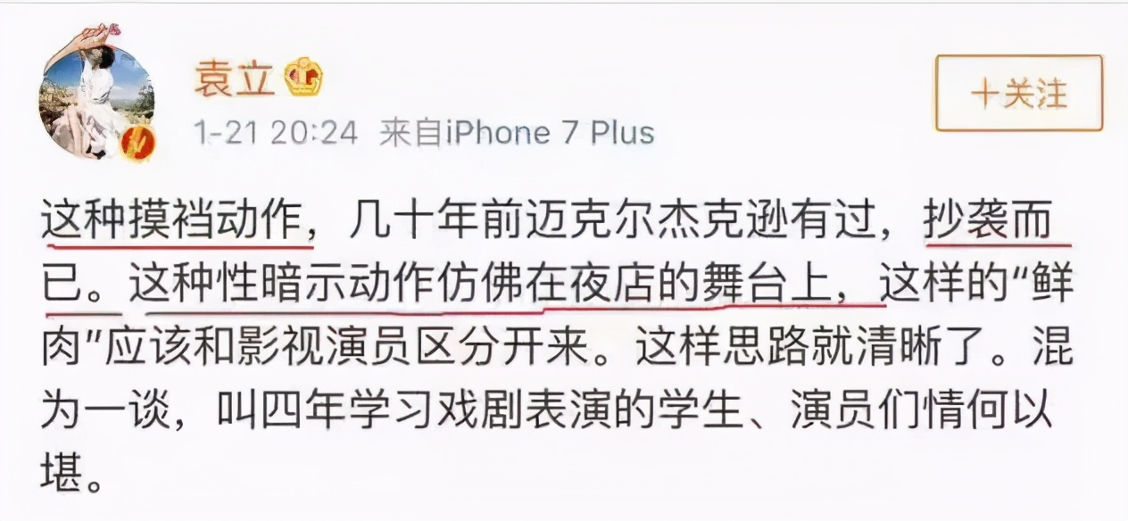 其实关于男艺人跳舞有摸裆顶胯动作,之前袁立就公开吐槽批评,觉得小鲜肉们跳舞模仿这种动作,抄袭迈克尔杰克逊,还有性暗示的夜店风格,有伤大雅,难登大雅之堂。没想到这次杜淳模仿这个动作,真的有了袁立欣赏不来的那种顶胯舞的感觉了。
