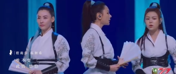 在第二轮公演中,张柏芝所在的组合,选择的《红颜旧》这首歌曲,很适合古装风格诠释。于是节目组造型师就消费了张柏芝曾经的代表作之《河东狮吼》,让张柏芝再现当年古装风采,视觉效果勉强还行。