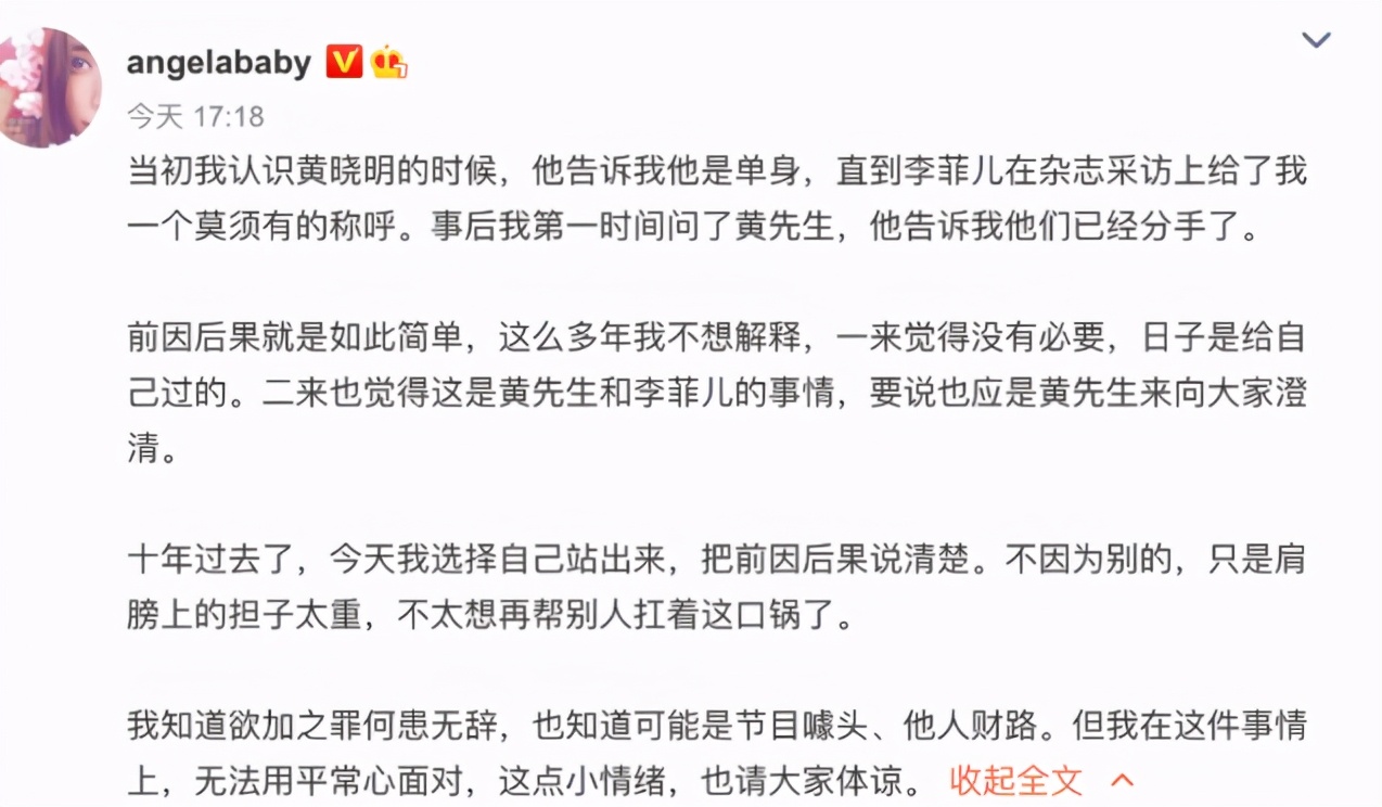 本来昨晚黄晓明前任这个身份可以被关注但没啥争议,谁知道后来黄晓明的妻子杨颖,因为李菲儿接受采访的言论,变成了疑似感情插足者,从此两人的前任关系演变成了三角恋关系,时不时被提及。