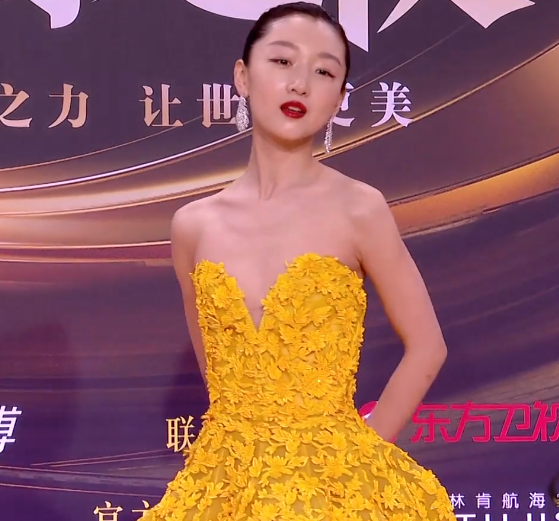 唐嫣其实也算谋女郎,很多年前的奥运会八分钟合作过。现在唐嫣,即使奔四,为人妻人母,却驻颜有方,依然年轻漂亮。虽然也是全黄系列,但美貌身材气质与众不同,加上了巨大的荷叶手腕装饰,让礼服显得更加庄重独特。