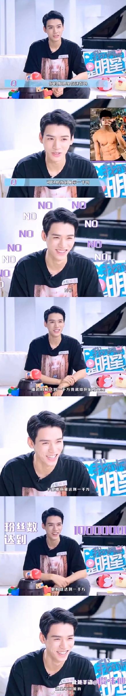 而且龚俊及其团队也很会适应网友及粉丝的口味互动,即使不惜牺牲身材曝光。在访谈中就抛出了腹肌梗,答应在粉丝过千万之后就发腹肌照。