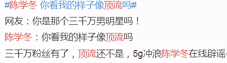 谜底没有揭晓,大家依然在竞猜破案,还有不少粉丝三千万的男星,有的甚至被粉丝期待能曝光恋情,比如很低调安静的陈学冬。但面对网友评论,陈学冬亲自下场,一句你看我是顶流吗,既回应了传闻,又蹭了个热度刷存在感,效果很好。