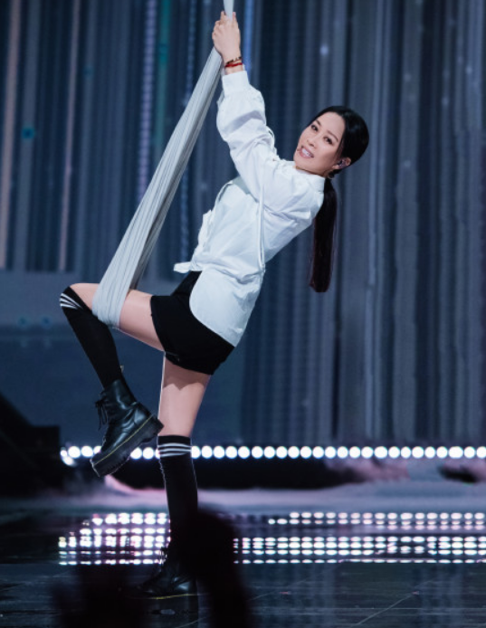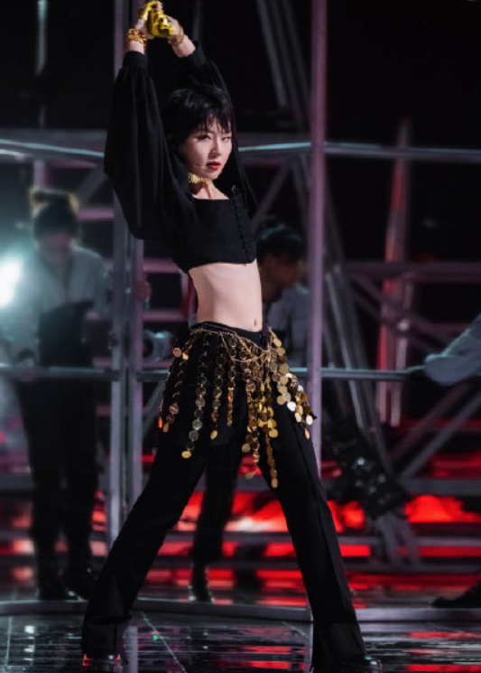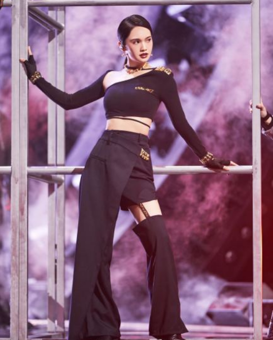 毋庸置疑,那英是要成团的,即使年龄最大,跳舞是短板,也不太适合唱跳成团。但是那英唱功好,名气大,参加节目以来一直是人气搭档,每次公演都是最抢手的队长,虽然能力有限,但精神灵魂的引导作用明显。所以总决赛,造型团队也给了那英比较不一样的打扮,既有利落大方的,也有这身很像碎纸片的礼服,尽显那英的C位冠军风范,看起来还算很吸睛。