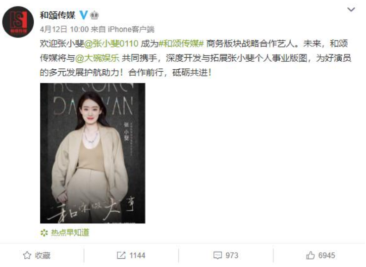 短短几个月,张小斐享受了之前十多年积累都没有的待遇,最近她又迎来好消息,签约李冰冰的和颂传媒公司。