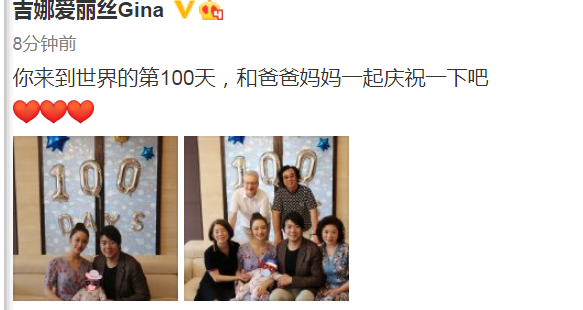 一晃郎朗吉娜升级当父母都已经一百天了,最近吉娜在微博晒照,为孩子出生一百天进行庆祝,两张照片信息满满。