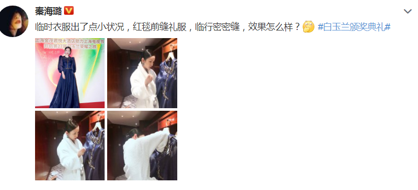 白玉兰奖女星盛装比美,秦海璐上场前缝礼服忙,关晓彤鞠婧祎助阵