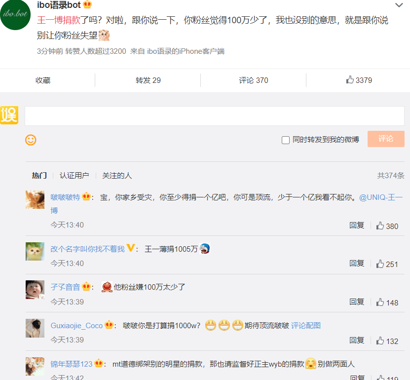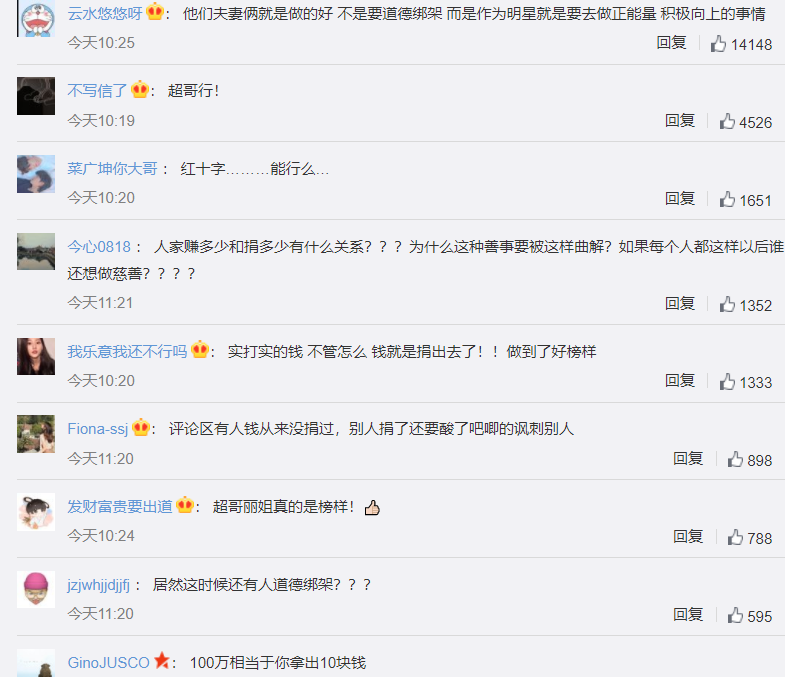 另一方面,有些明星虽然捐款不多,但捐款后却纷纷登上热搜榜单,被一顿尬夸,这样一来更让人质疑,他们捐款后的炒作,是否有借机炒作的嫌疑。