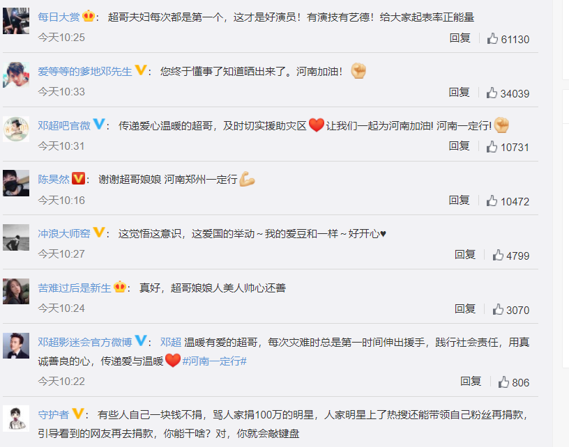 在这方面,邓超孙俪夫妇,张杰谢娜夫妇,肖战等明星,都被质疑捐款不够多,却有点热搜炒作的嫌疑。其实这些明星也很纠结,不捐款要被非议,捐款不曝光宣传不被知道也要被质疑,广而告之又要被吐槽炒作,确实比较为难。其实娱乐圈还有很多很多明星,大家没必要纠结这些捐款积极的明星。