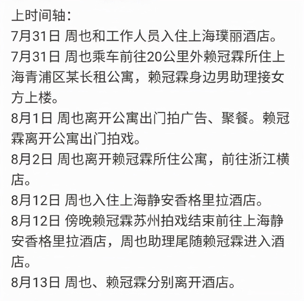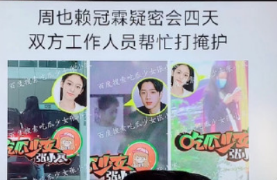 最近,有网友在网上爆料,说拍到周也赖冠霖疑似密会4天,疑似还有双方工作人员帮忙打掩护。