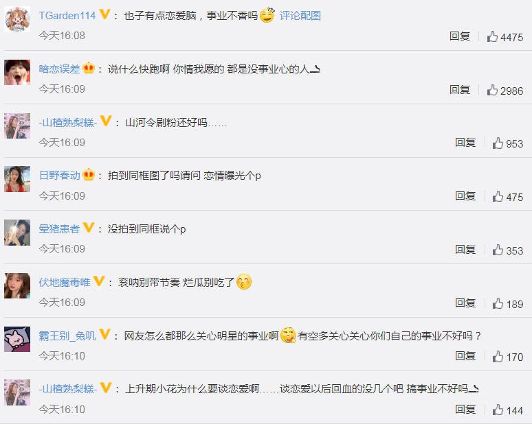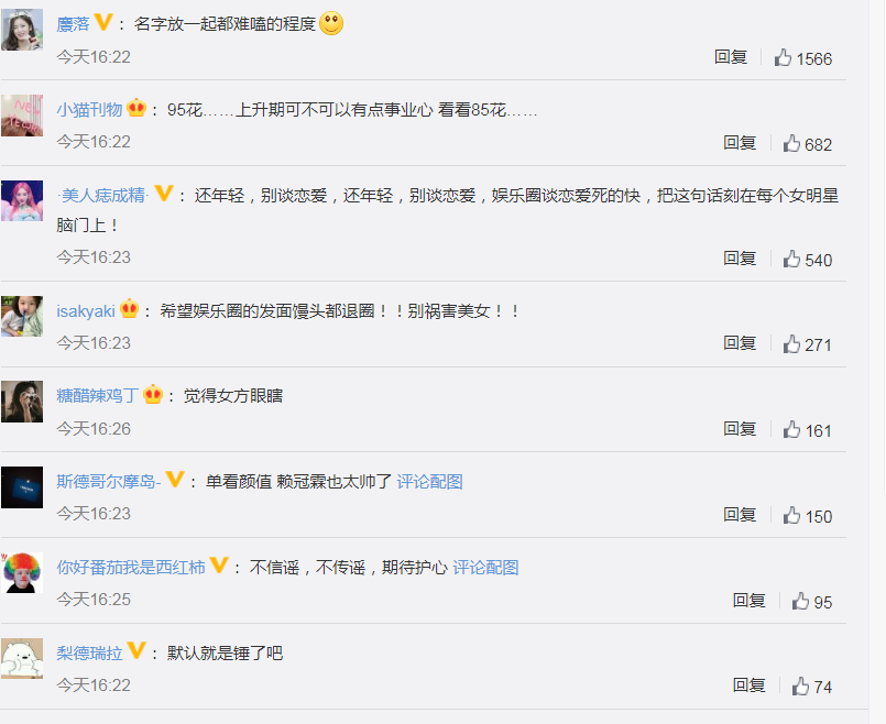 当然,也有普通吃瓜群众觉得,目前只是拍到一些疑似恋情的东西,还没确定和官宣,说不定这些都只是烟雾弹。而且,就算喜欢的艺人要恋爱,也是他们的自由和权利,粉丝不必监控约束过度,有人确实也做到了恋情事业两不误。至于恋情的稳定性,娱乐圈艺人很多都有过一些情史,不可能很早恋爱的都能修成正果结婚生娃,有些恋爱的经历,好像也是人生和事业必修课,只有去经历了,自己才会有体会和总结。