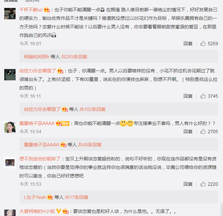 对于这段被拍的疑似恋情绯闻,当事人及其双方工作人员都还没回应,没确认也没否认,但双方粉丝就开始闹意见了。这其中,相比之前年龄稍大的周也,粉丝更多,反应更激烈,纷纷劝周也要清醒,原因有三点。