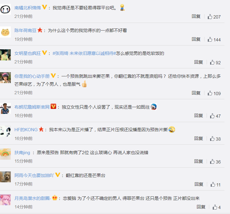 就算是之前力挺张雨绮的粉丝,这次也忍不住吐槽和规劝张雨绮不要恋爱了,为了一段走势并不明确的恋情,牺牲得罪太多,不值得,很多人也不看好她和这个小男友能修成正果,无非互相利用罢了。