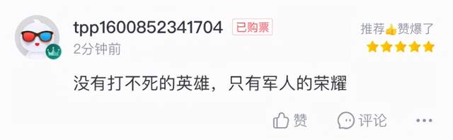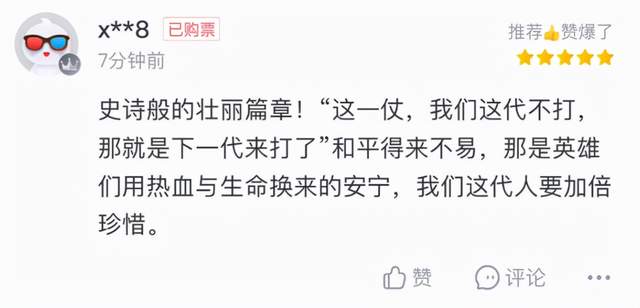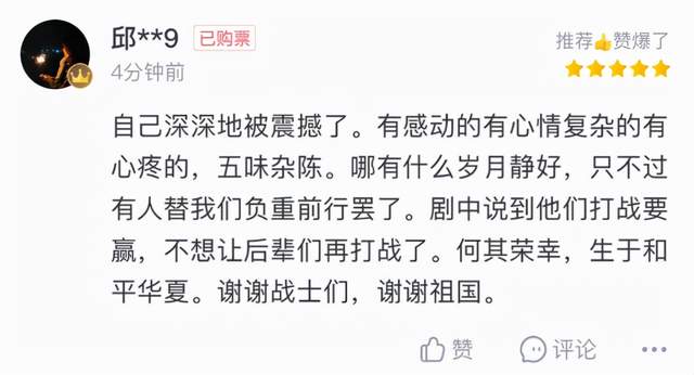 也有人在影评区感谢我们的先辈,他认为是他们的牺牲,让我们生活在一个没有硝烟的年代。