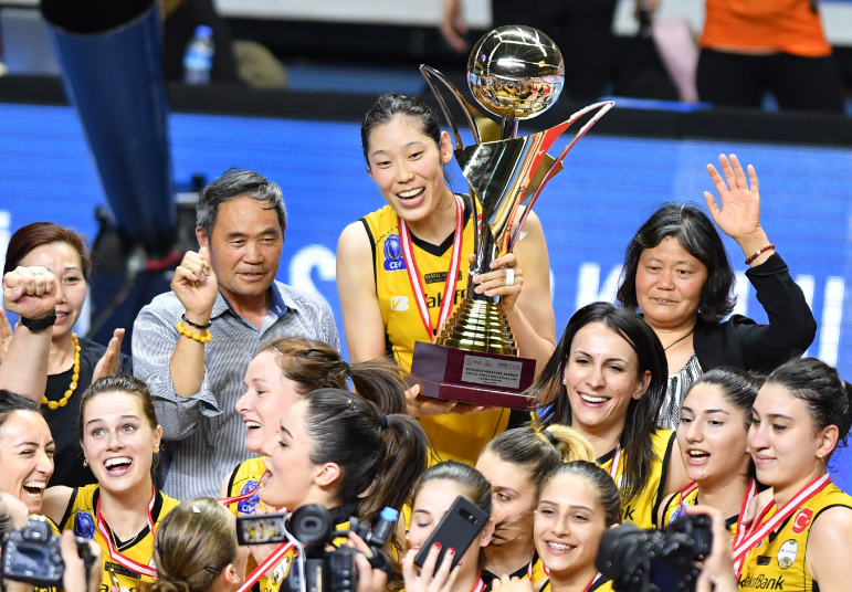 在上一个周期,朱婷不仅带领球队夺得多个冠军,自己也多次拿下MVP,成为世界最强主攻,还被国外重金邀请去打球。