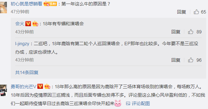 对于公布的这些数据,鹿晗的粉丝表示不满,觉得公司公布这些数据没啥意义,而且还认为鹿晗这几年收入下降,很大程度上是因为公司对鹿晗助力不够,音乐发展策划和宣传不够。