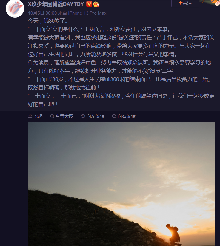 随后,在十月初,当红流量明星肖战,也度过了三十岁生日。