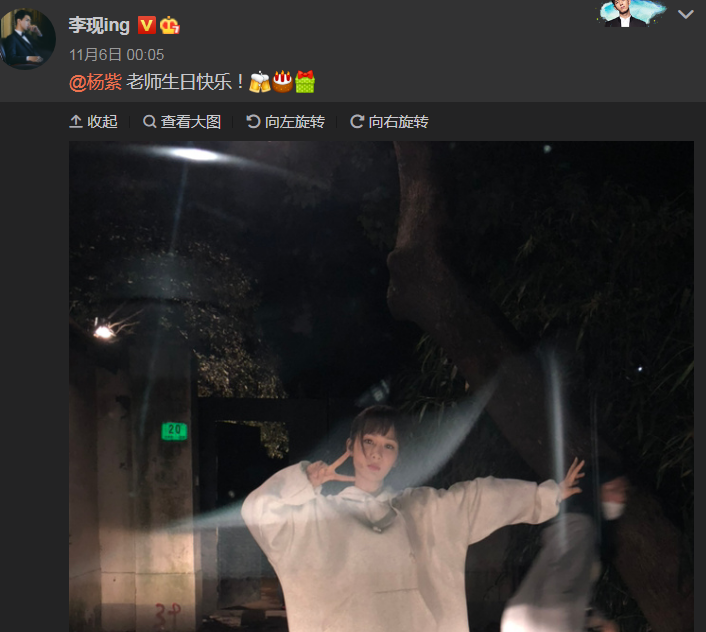 另一种就是关系特别好的,不会简单路过评论送句祝福了事,还会单独发微博,送上暖心的话语和祝福,而且要晒上照片。比如一直和杨紫关系很好的老搭档老同学张一山,以及最近几年关系变得很好的李现,还有合作之后关系一直不错的闺蜜乔欣,都会单独为杨紫庆生,看得出关系非常要好。