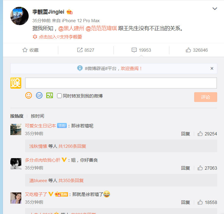 但是为什么李靓蕾没有在辟谣中提及徐若瑄的名字,后面的否认,也显得有些苍白,反而暴露了与徐若瑄的关系确实不太好吧。