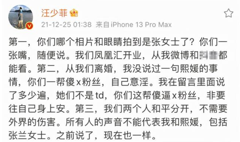 而汪小菲这边也有这个特点。比如这些年,除了与张雨绮等女星的八卦,与大S十年婚姻中,很享受作为明星丈夫的名气,不仅以此拓展自己的人脉和事业,还一起上节目捞金。但是有时候针对有些问题发言,过于激进甚至失去理智,然后又来删除一些发言,有点不谨慎和打脸。