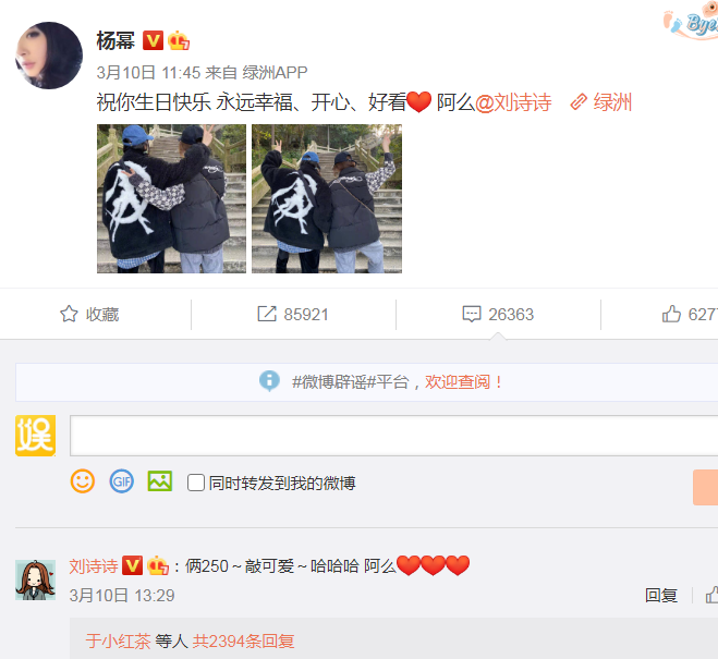 不过,这种社交平台互动,已经变成了营销工具,不见得是真情实感。因为杨幂曾经也和刘恺威在网上疯狂秀恩爱,彼此送生日祝福,还说他们秀的恩爱不会死,结果还是被打脸了。现在离婚了,自然也没有继续在网上互动了。
