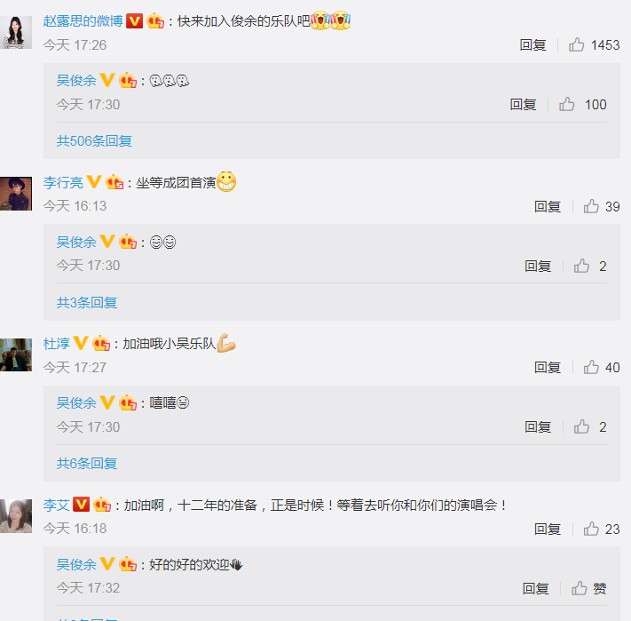 不过吴俊余的微博粉丝好像还不少,有近千万,新动态下面,也有昔日搭档赵露思,以及快男兄弟李行亮和主持人李艾等留言支持。
