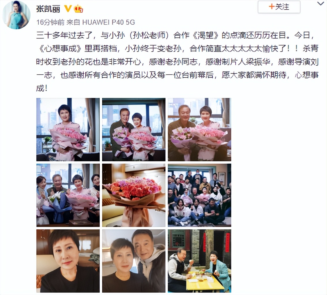 最近,张凯丽在微博晒出新剧《心想事成》杀青照,与老搭档孙松开心合影,这是31年后,两人再次搭档,也是演夫妻。现在大家估计也不期待两人再次合作会有怎样的火花,只是在怀念曾经给大家的回忆。两位演员多年之后再合作,也有诸多感慨,凯丽在化妆保养和滤镜的效果下,看起来比以前还年轻时尚,而孙松已经是妥妥的老大爷了,形象变化比较大。