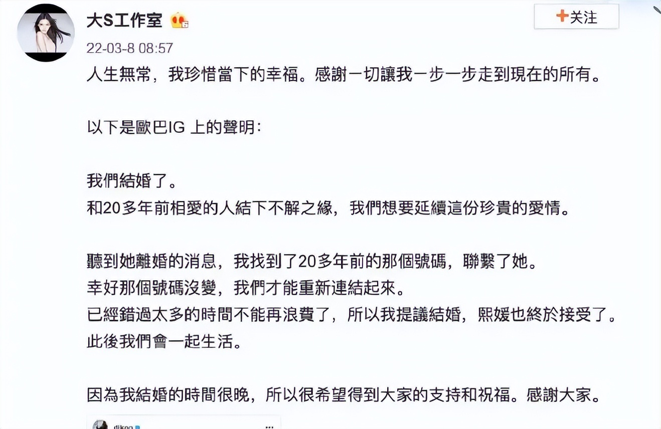 首先,大S与具俊晔复合,比王菲与谢霆锋重修旧好高调。