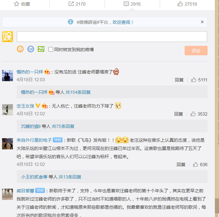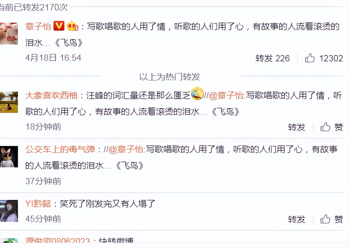 不过很遗憾的是,汪峰发新歌《飞鸟》这天,娱乐圈风平浪静,基本上没啥轰动的大事发生,一方面可能是因为娱乐圈经过整顿冷清了,另一方面是明星低调了,所以吃瓜群众都发出内娱无聊的感叹。