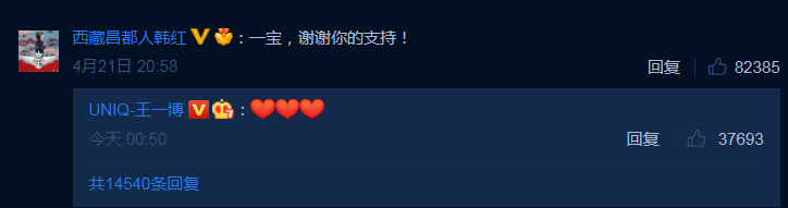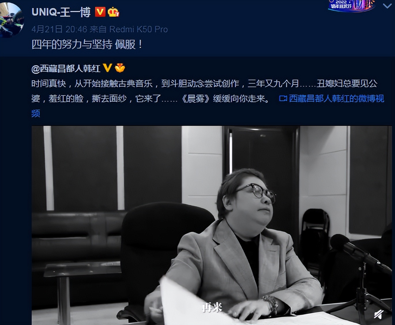 不过这次韩红感谢王一博的支持,不是一起捐赠物资驰援上海,而是韩红操刀的新的音乐作品,经过三年多的时间打磨,终于要推出了。韩红在社交平台分享这个消息后,王一博转发支持,利用自己的人气和粉丝影响宣传,所以韩红感谢她的支持。