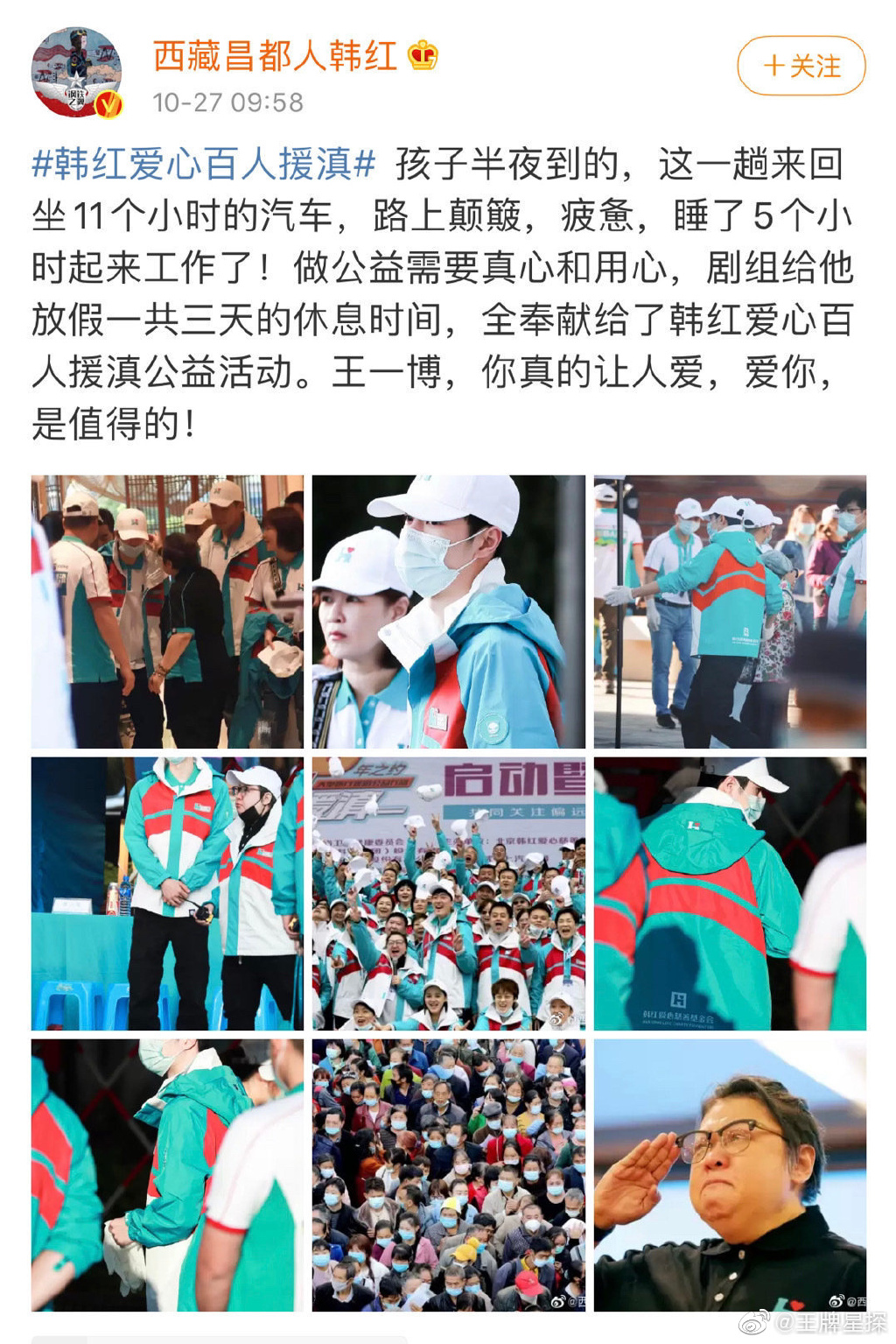 之前王一博就多次和韩红一起亲力亲为前往灾区救灾,韩红多次对王一博赞不绝口,感谢他的支持。