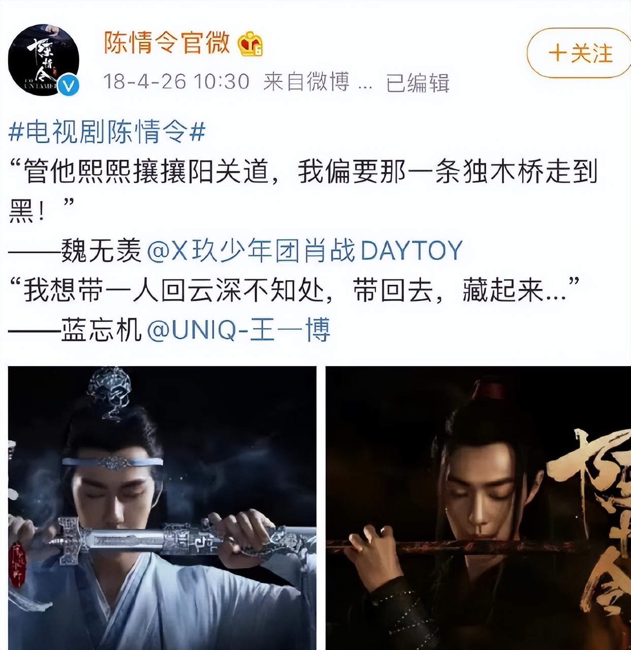 直到《陈情令》播出之后,由于人气太旺,很快就捧火了肖战和王一博。其实反过来说,也是肖战和王一博成就了这部剧,算是互相成全。其实真的要细究下来,这部剧的故事和表演也算不上经典,但肖战王一博的古装造型确实惊艳,加上一些故事和人设的烘托,让不少网友被圈粉,深陷其中,分别成了肖战、王一博各自的粉丝,还有一些CP粉也痴迷不已。