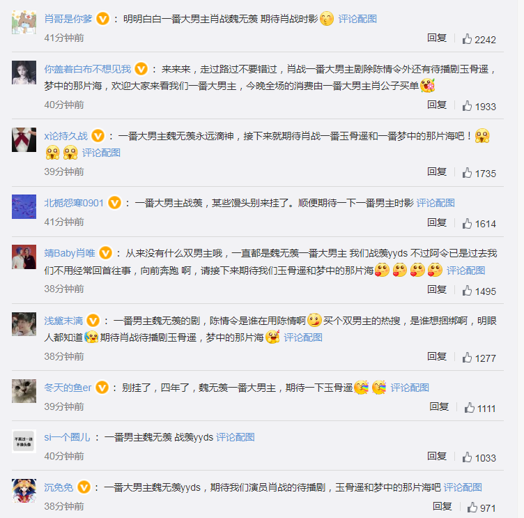 虽然当年戏里戏外,肖战王一博关系很好,但这几年各自忙碌,交集已经不多,但是两家的粉丝却依然热情高涨,除了坚持力捧自己的偶像,双方还在纠缠陈年往事。这其中的焦点,就是双男主的定位,颇有争议。