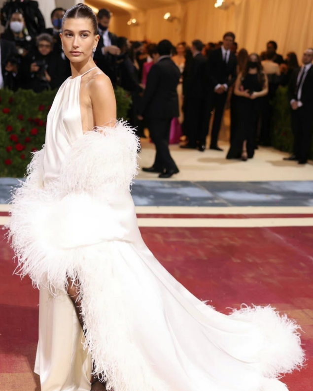 她身穿Yves Saint Laurent古着礼裙,这条裙子是20年前的vintage,造型师相当给力,在海莉的演绎下优雅似天鹅湖中的白天鹅公主,气场很强大。