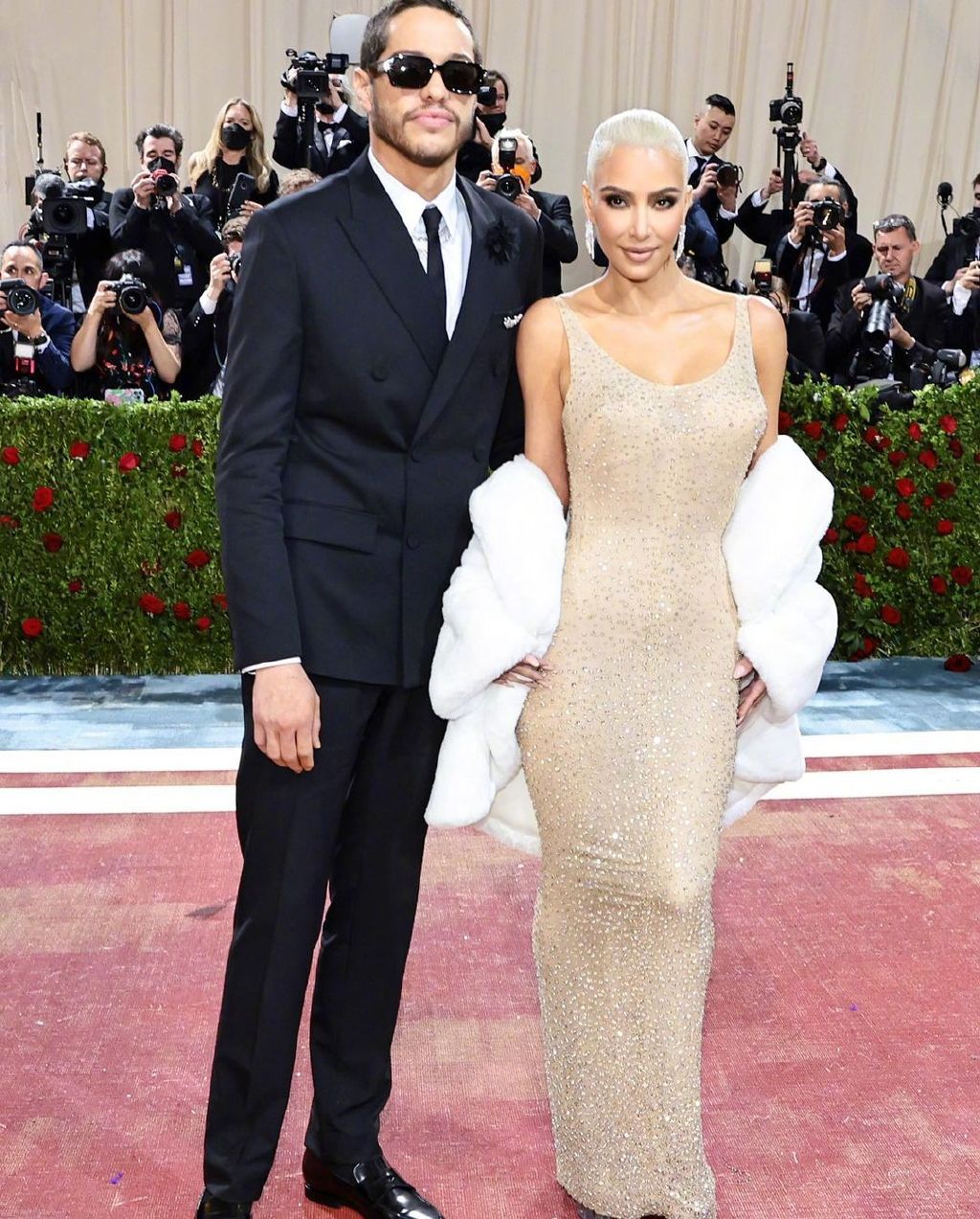 金卡戴珊这次的礼服,可以说相当豪华昂贵,而且很有历史意义,这件礼服是1962年肯尼迪总统生日庆典上,玛丽莲梦露为其唱生日歌时所穿的那件有2500颗水晶钻石装饰的肉色紧身连衣裙。2016年这件具有历史意义的裙子以480万美元的价格拍卖掉了,前些日子已有消息传出kim要穿这条裙子。