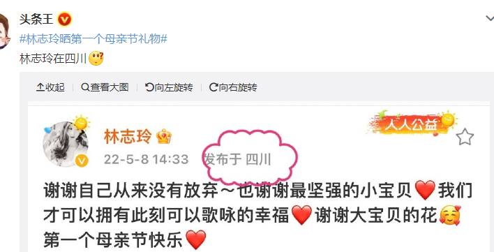 林志玲首个母亲节感谢自己和孩子,IP地址显示在四川引发网友关注