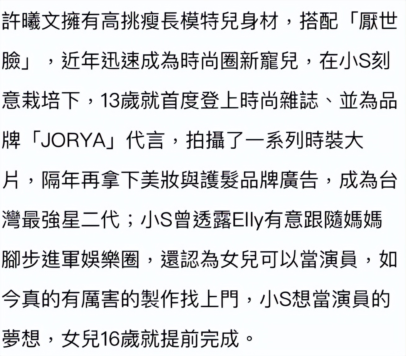 大女儿许曦文受邀出演日本漫画作品,16岁或出道娱乐圈,小S支持