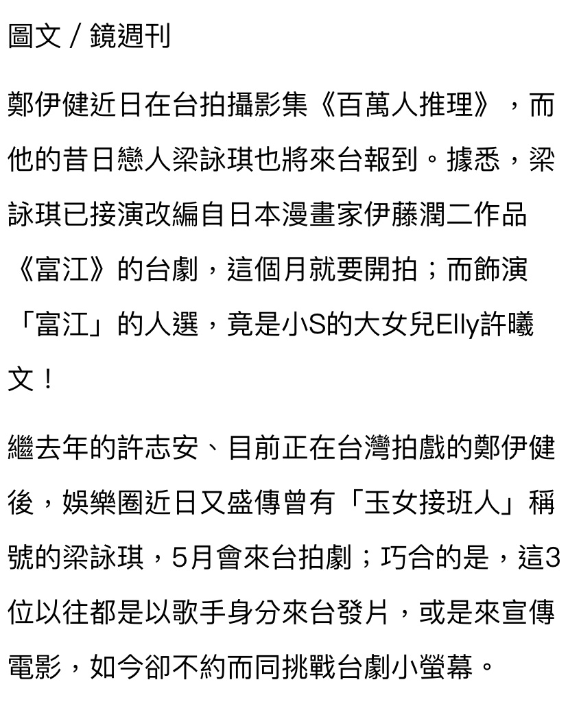 果然,据台媒报道,小S的大女儿许曦文(Elly)被曝受邀出演日本恐怖漫画大师伊藤润二的经典作品《富江》,这是被相中要进入娱乐圈的节奏,但是目前她才16岁,还是学习的时候。