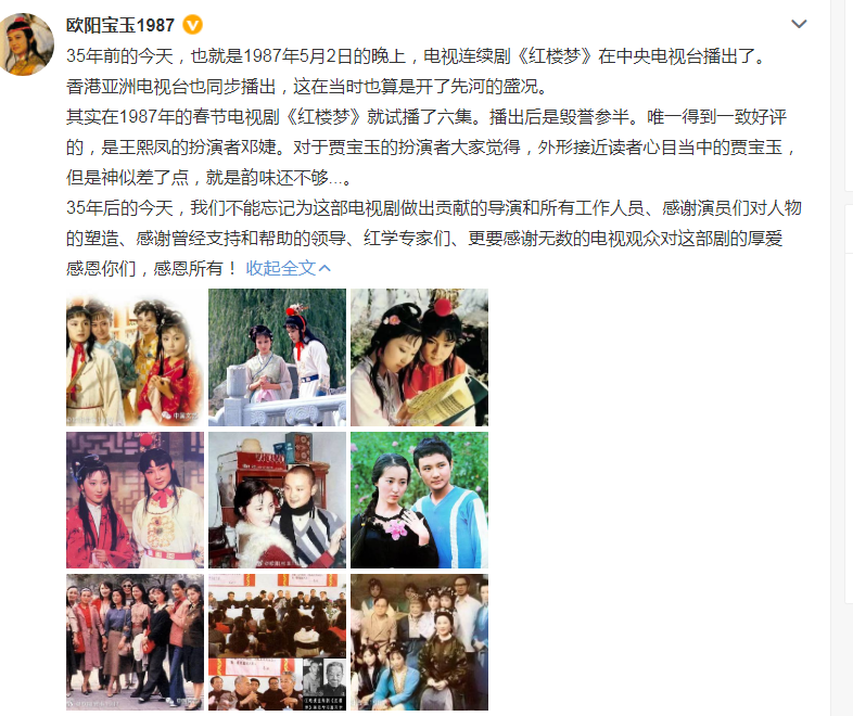 五月初,作为87版电视剧《红楼梦》男一号主演的贾宝玉,发文纪念电视剧面世开播三十五周年,回忆当时的情景,感慨这么多依然在荧屏活跃,让不少观众围观,历久弥新。