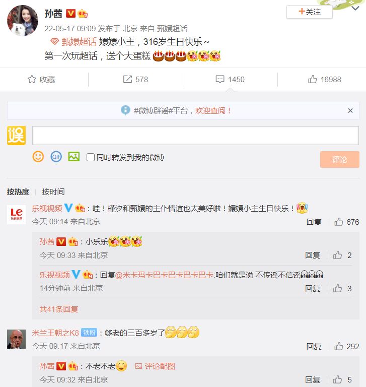 而最近,因为《甄嬛传》怀旧热带火了甄嬛这个人物,长期刷屏,网友还为她庆祝316岁农历生日,不得不说网友很无聊也很用心。而《甄嬛传》演员们,包括饰演甄嬛的孙俪,都没出来蹭热度,孙茜却出来祝甄嬛生日快乐,虽然是觉得好玩,但登上热搜,就有点尴尬,让人觉得她连甄嬛的热度都蹭。