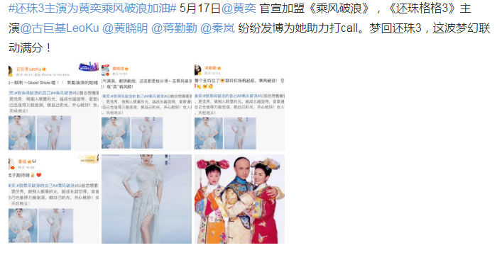 另一方面,黄奕就重点消费虽然不算经典但算自己的代表作的《还珠格格3》的名气。虽然这部续作其实也是蹭之前两部作品的热度,口碑一般,但主演们如今名气都不小,所以黄奕私下估计找不少主演求情帮忙宣传,特别是喊话当年演夫妻的古巨基,没有得到回应之后,干脆单独发微博网上造势给古巨基施压,最终古巨基出来为她加油。不仅如此,《还珠3》的主演黄晓明、秦岚和蒋勤勤都为她加油,估计也是她私下联络求助的,否则这些人也不会那么关心这档节目,更不会主动为她加油,因为平时她与这些人早就没有互动了,发展也落后很多。