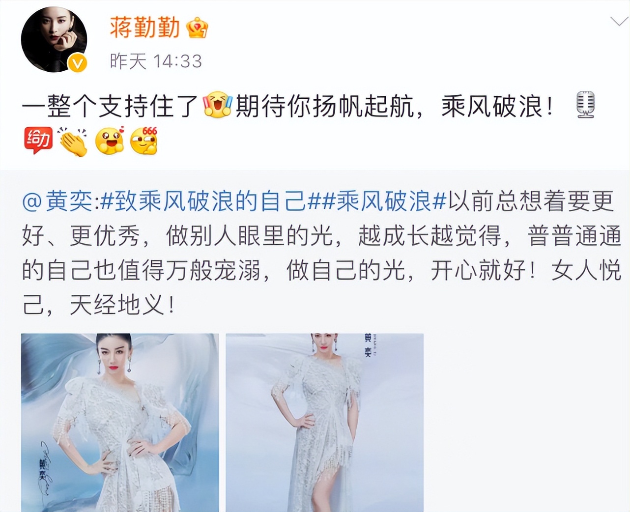 所以在《乘风破浪》官宣阵容的当天,黄奕就先后制造了“黄奕喊话古巨基微博私信回信”、“还珠3主演为黄奕乘风破浪加油”两个热搜话题,看起来比好些女嘉宾都卖力。不过黄奕这两个话题代价不小,也被网友质疑吃相不佳。