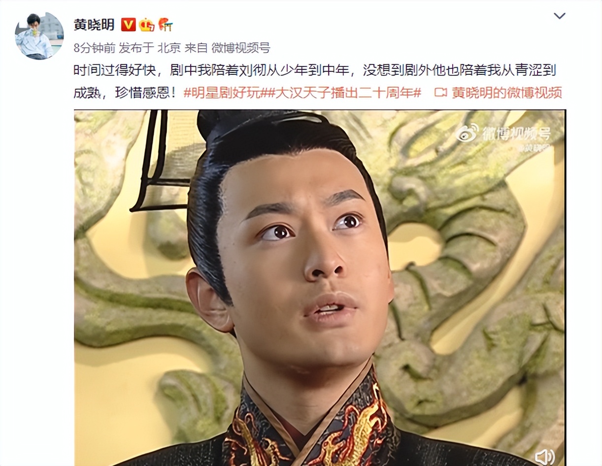 黄晓明庆祝《大汉天子》播出二十年,当年黝黑,现在逆生长变白嫩