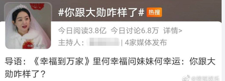 结果魏大勋没有沾光秦岚和自己的作品,倒是隔空与赵丽颖的热播新剧《幸福到万家》有了联系。