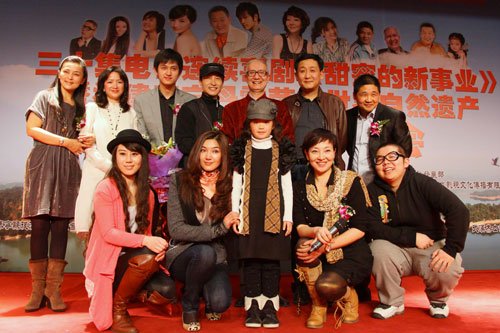 腾讯娱乐讯:由国家广电总局新视点电视节目制作中心、中国乡土艺术协会文化发展部、北京一江春水影视文化传播有限公司、亚太中视(北京)国际影视文化传媒有限公司、上炫月(厦门)文化传播有限公司联合拍摄的30集电视连续剧《甜蜜的新事业》暨福建泰宁丹霞成功荣膺世界自然遗产新闻发布会,2011年3月2日在北京隆重举行。我国著名影视演员、该剧导演马羚携全体主创人员在新闻发布会上集体亮相。文化部、国家广电总局、国家旅游局、中国乡土艺术协会等单位领导及影视界众多明星、知名人士和全国30余家新闻媒体出席了新闻发布会。福建省泰宁县县长廖小华带领泰宁县相关人员参加了新闻推介会。