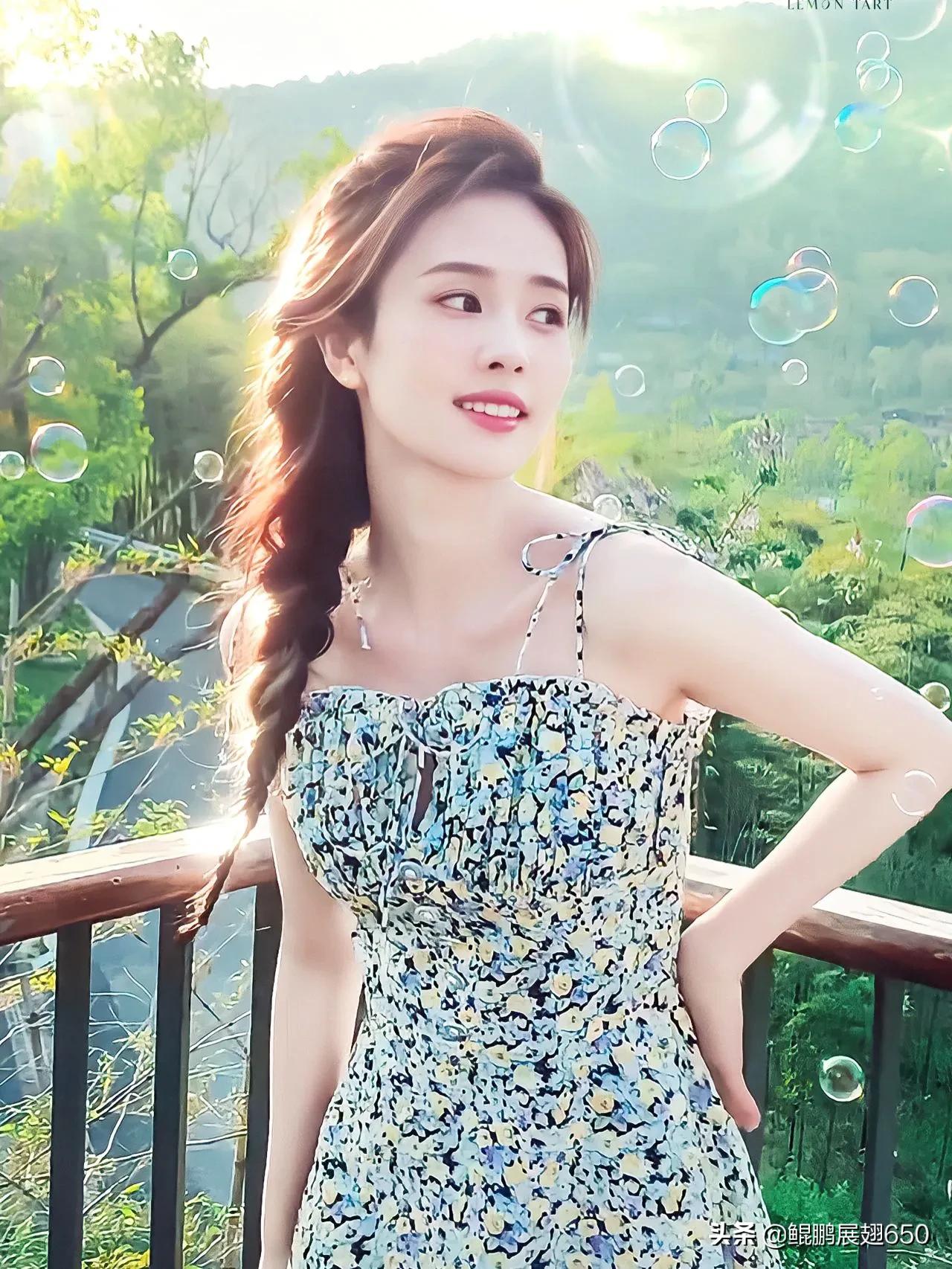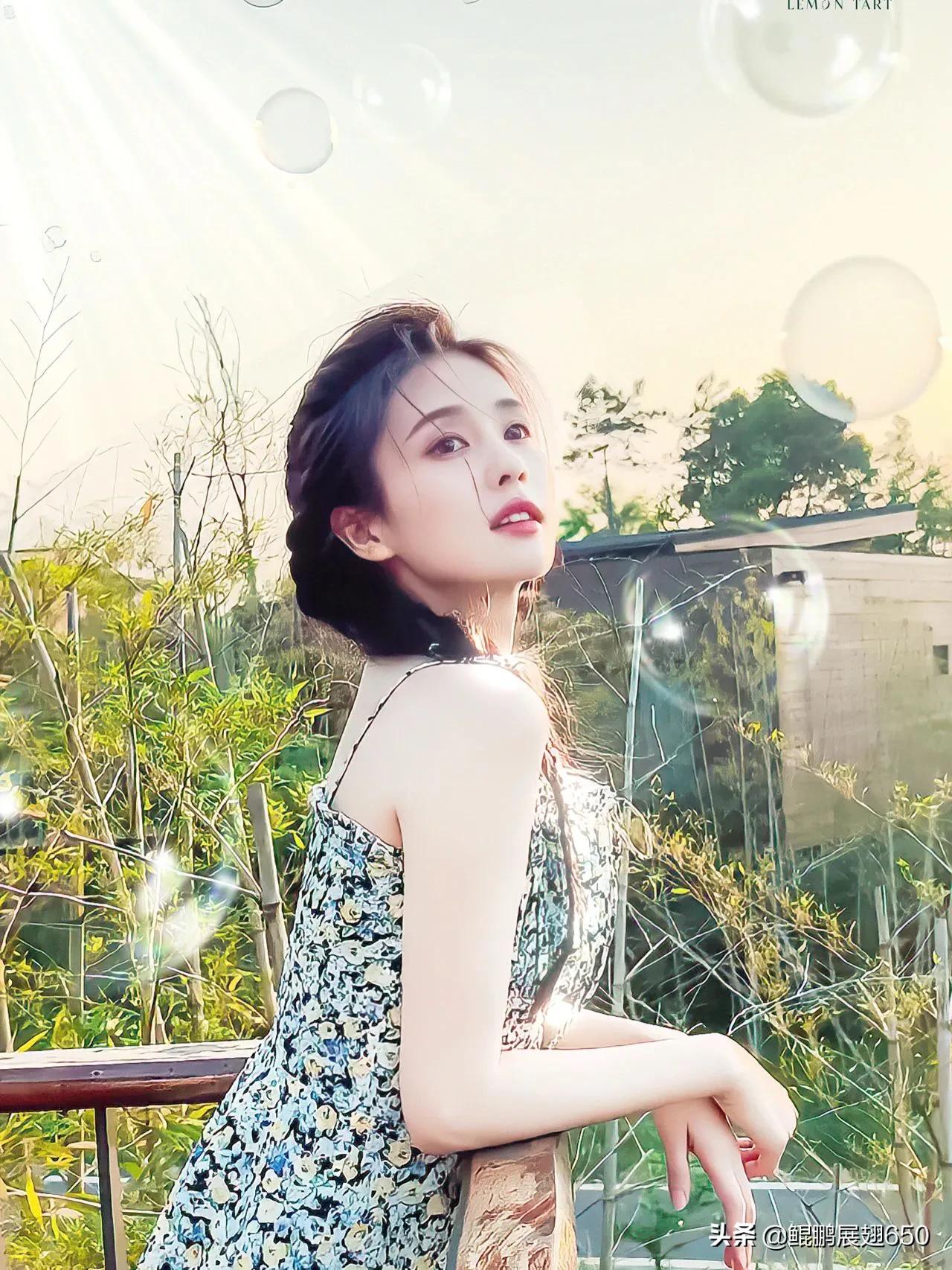 亭亭玉立碧罗裙,袅袅娉娉赏景人